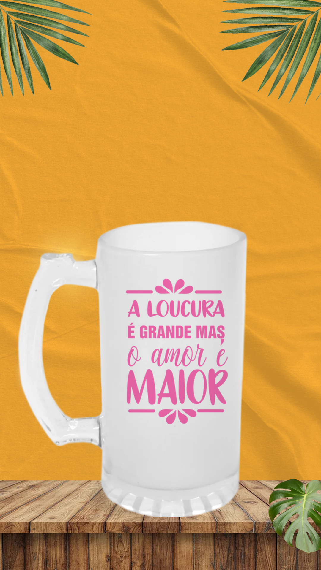 COPO DE CHOPP VIDRO JATEADO FOSCO - 475ML A loucura é grande , mas o amor é maior