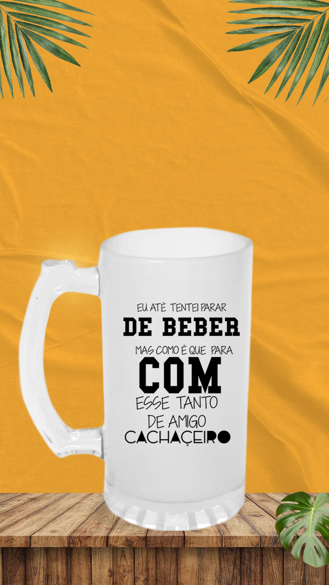 COPO DE CHOPP VIDRO JATEADO FOSCO - 475ML Eu até tentei parar de beber